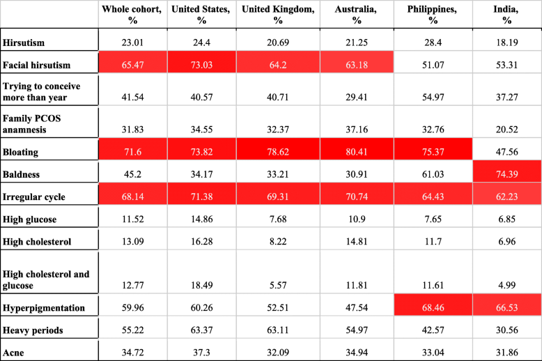 Table 3 Prevalence of symptoms among women with PCOS from the top 5 responding countries